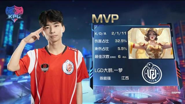 本以为君诏还会是接下来比赛的绝对主角,此时队友的一梦站出来说了我要当全场最耀眼的仔。第二把比赛中,选出"工具人"中单姜子牙。成功以0阵亡的完美数据带领LGD连夺两场胜利并拿下第二场比赛的MVP。在比赛中,甚至出现了大招直接刮死一诺的公孙离的精彩时刻。