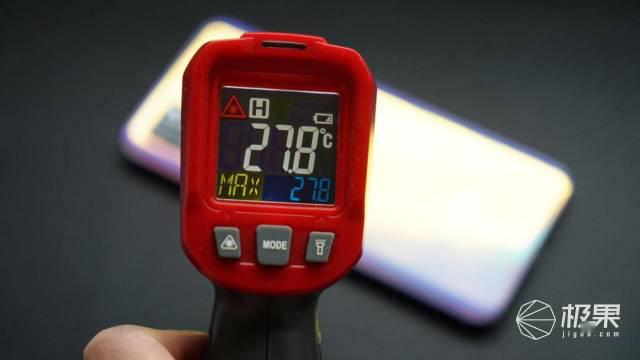 而游戏和散热测试当然是不分家的,在手机初始温度20℃的情况下,经过了连续2.5小时的连续游戏,实测机身最高温度仅27.8℃,多次测试都没有出现明显发热的情况,散热表现还算不错,喜欢玩游戏的用户就不用担心了。