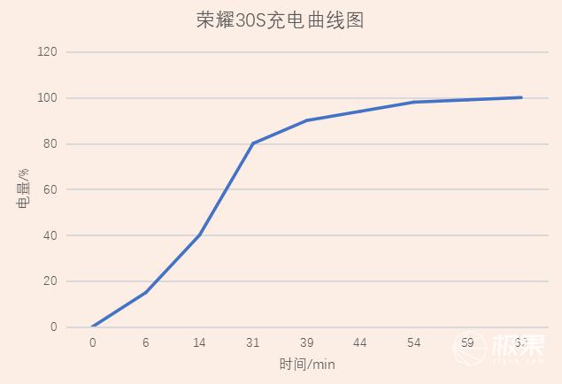 经过实际测试,也感受到了40W的诚意,实测充到充到6分钟可以充到15%,14分钟可以充到40%,31分钟可以充到80%,39分钟可以充到90%,随后手机为了保护电池寿命进入涓流充电,23分钟后充满,最终话费时间62分钟。而荣耀30S是内置了一块4000mAh电池的,涓流充电之前的充电速度真的是非常快,足以满足用户日常的充电需求,表现还是非常不错的。