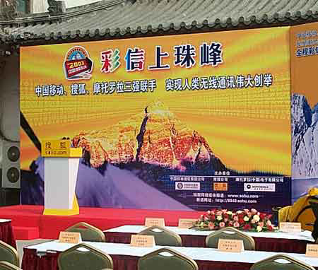 中国移动提供网络技术支持的“彩信上珠峰”活动取得了圆满成功,中国登山队在海拔8848米珠穆朗玛峰峰顶使用中国移动网络打通了电话,并用短信信通告了这一喜讯。