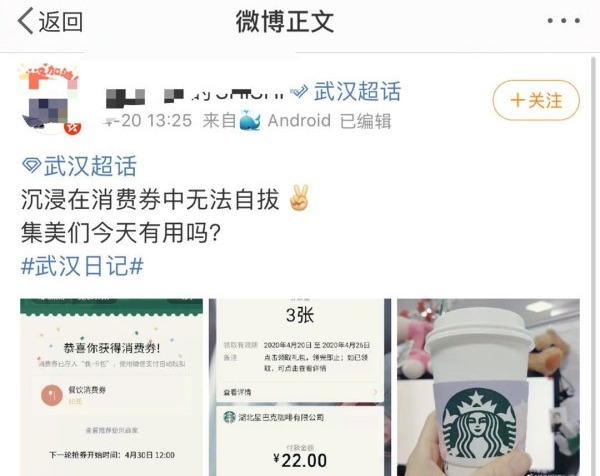 除武汉消费券,微信支付还联合武汉本地商家上线城市消费券,包括星巴克、必胜客、周黑鸭、海底捞、家乐福、Nike耐克等数百个品牌商家,让武汉的消费者通过“武汉消费券”小程序就能便捷领取。城市消费券可以和武汉消费券叠加使用,消费者们享受双重惊喜,同时为商家恢复正常经营带来了活力。