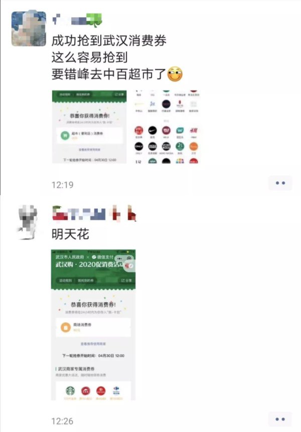 “你抢券了吗?”成为市民最新的问候语,不少人早早做好计划,盘算好抢券类型、抢到券后怎么花,12:00一到就直奔目标。武汉市民程先生说,“我最想抢的是超市消费券,因为肯定用得上。”为了多抢几张券,程先生全家的手机都用上了,身边的朋友也都在抢。家住香港路的李女士成功领取到满30减10元的餐饮券,她表示,“我家楼下有家肯德基,今天领券明天消费。”