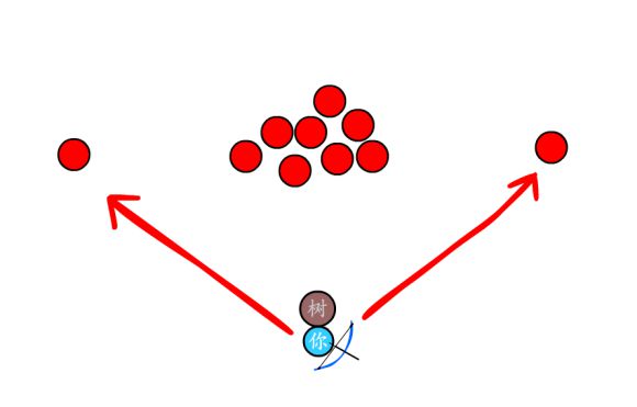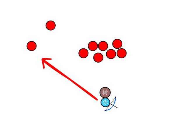 离树远一些,可以提高你的视野,以及判断对面弓手处于什么状态,比如:瞄准状态,取箭状态。。。这有助于你做出下一步躲闪动作,以及攻击顺序,很重要!如果对面人太多,就放飞自我。