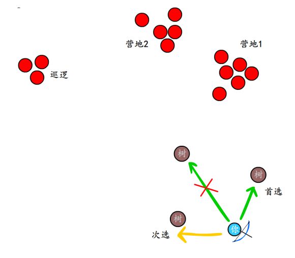 解读:npc在自身具备远程能力时,如果遗失唯一可攻击目标,会保持一定距离,并原地等待目标出现(距离未达到切刀警戒)