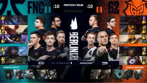 北京时间2020年4月20日,虎牙独播LEC春季赛季后赛的最终决战盛大开战,欧洲历史上最强大的豪门G2与FNC携手上演巅峰德比之战。不过比赛进程几乎与大部分人的预测都不相同,观众们本以为近期状态出色的FNC能有机会挑战欧洲之王G2。但显然首轮的意外爆冷已经让G2强势觉醒,他们在季后赛舞台越战越勇,所向披靡的G2在总决赛舞台零封FNC再次登顶欧洲之巅。