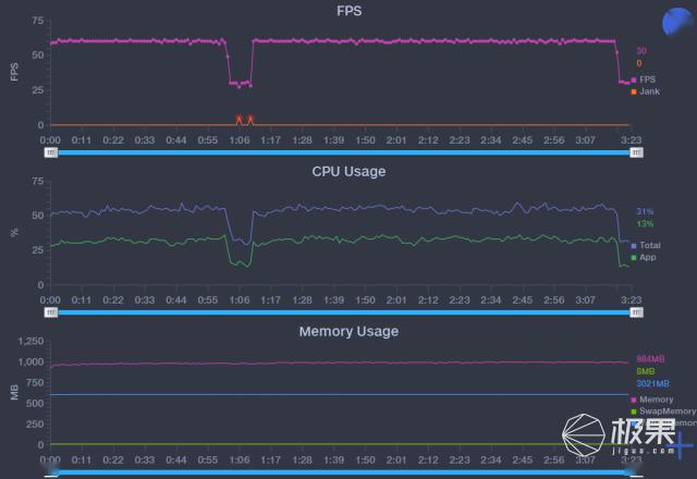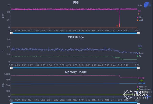 从帧率测试软件可以看到,在王者荣耀游戏中,除了阵亡的时候会遇到帧率波动以外,其他时候基本都保持稳定的60帧左右,在最高画质下运行非常稳定。