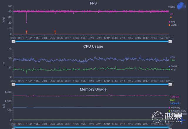 从实际的游戏测试可以看到,在开启了流畅+超高帧率模式下,荣耀30S基本保持在40帧左右。
