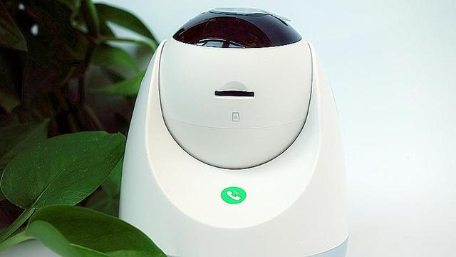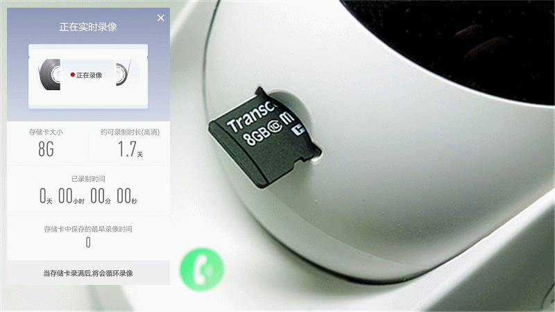 球头底部是存储卡槽,本机不提供MicroSD卡,需要自行购买。MicroSD卡需为FAT32格式,速度在class4以上,最大支持128G容量。机身底座上还有一个触摸式一键通话按键,通过它可与APP用户进行双向通话,具备紧急呼叫功能。