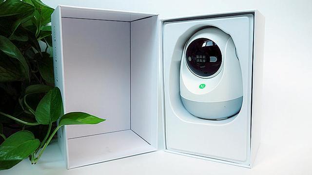 360智能摄像机云台AI版标准款的包装盒采用了360家族的传统配色:白+绿,盒体正中央位置是360摄像机的高清大图,图案下方是产品名称与产品SLOGAN:打开手机,随时随地看到家!右上角的绿色三角标内则是该款产品的型号:云台AI版标准款。