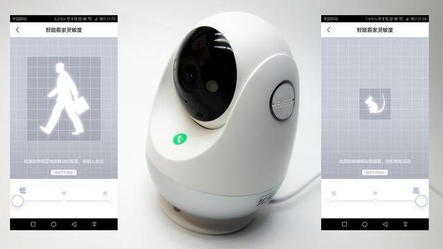 360摄像机提供智能追踪功能,并可选择高中低三档灵敏度,能够实现对移动物体的自动检测、监控与报警,当人或物体发生位移时,镜头能够自动旋转、持续跟踪并将消息推送至APP。
