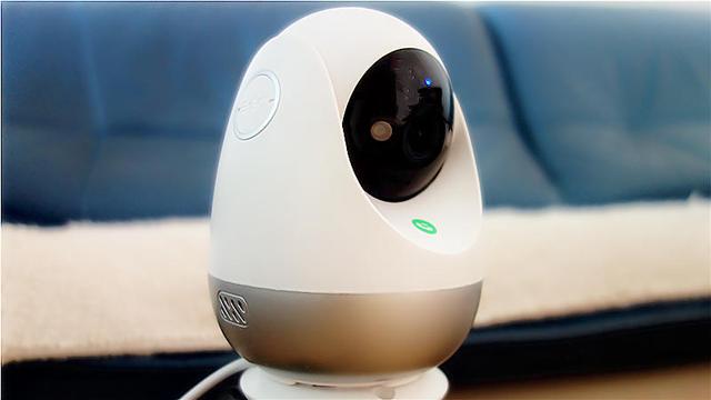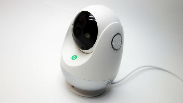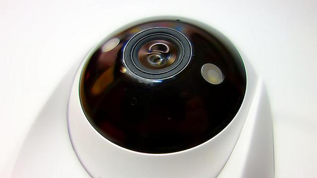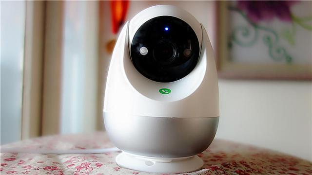 监控头为球形,正中央位置是镜头,可视角为110度;左右两侧各有一白光灯,顶端是状态指示灯,下方是麦克风。此外,内部隐藏着8颗红外夜视灯,黑夜时仍能够清晰成像。