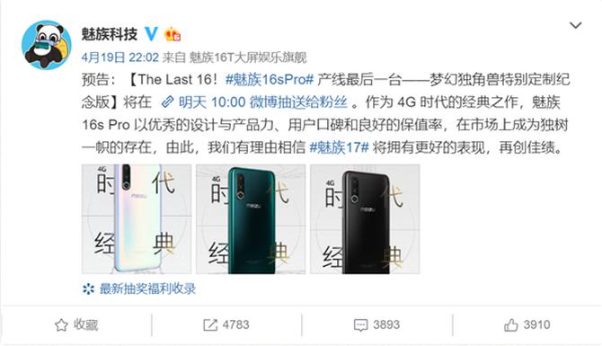 今日,魅族科技官方表示,魅族16s Pro生产线的最后一台手机——梦幻独角兽特别定制纪念版将在4月20日通过微博抽奖活动送给魅友,这也预示着魅族16s Pro将不再生产,并为全新的魅族17让路。