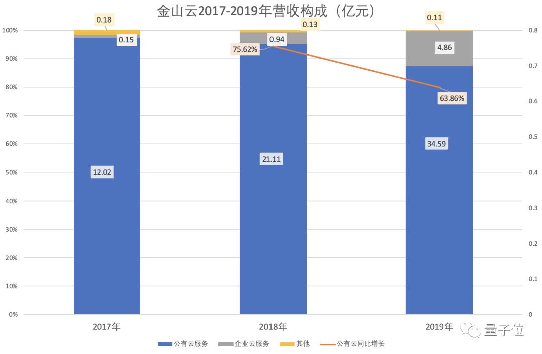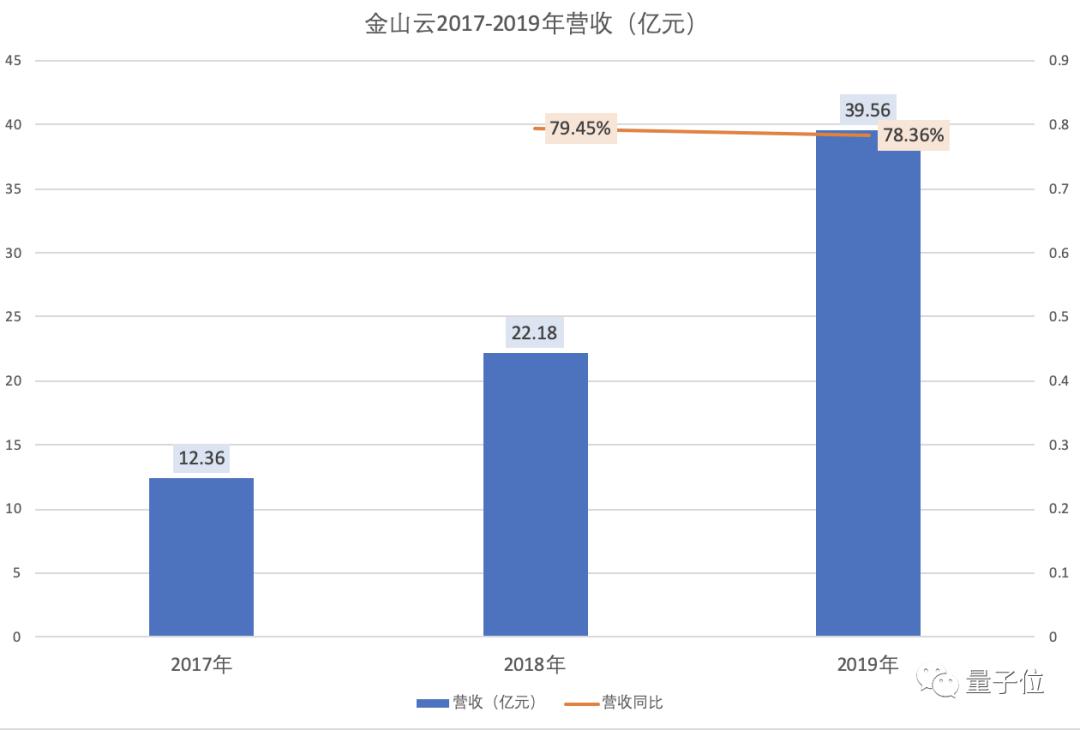 2018年和2019年营收同比增长79.45%和78.36%,与腾讯云2019年增长86%,青云的33.89%,UCloud的27.35%相比,金山云的增速处于第一梯队。