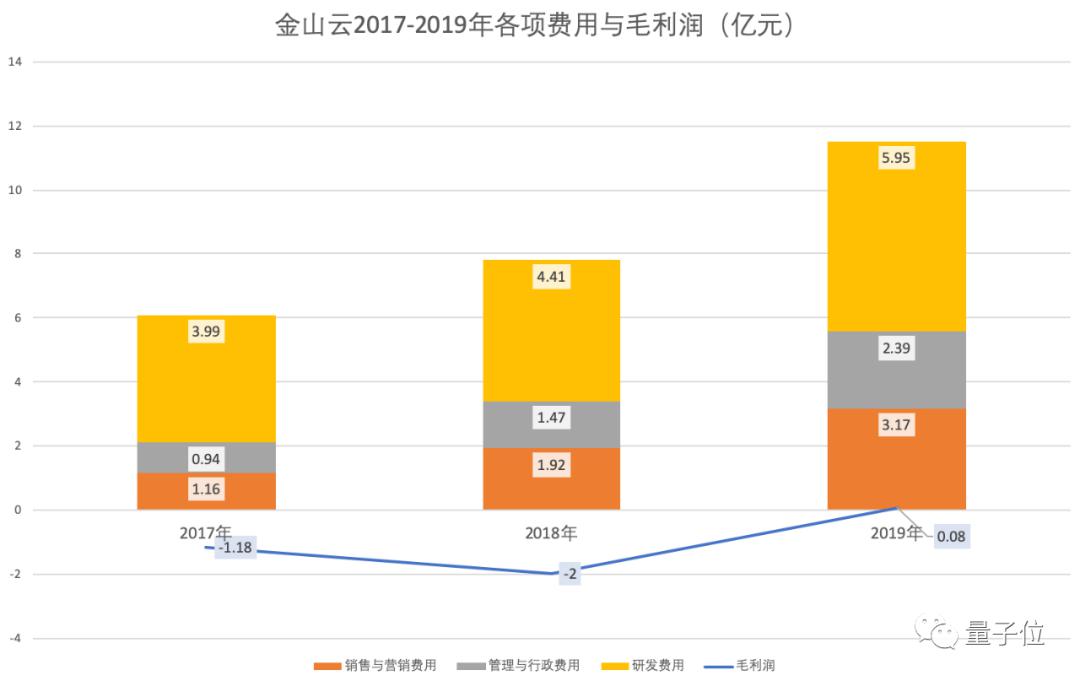 而金山云想要成长为一项有利可图的业务,需要毛利润超过各项费用的合计。