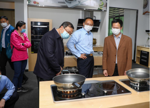 ▲ 徐文泊副市长(右一)一行参观驭龙电焰厨房