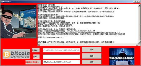 电脑中招之后,就会出现前面那张红色边框的弹窗。网友表示,刚看到这款勒索软件界面时一度认为是来恶搞的 , 因为界面与WannaCry病毒相似并且还挂有一位令人眼熟的人物素材图片。