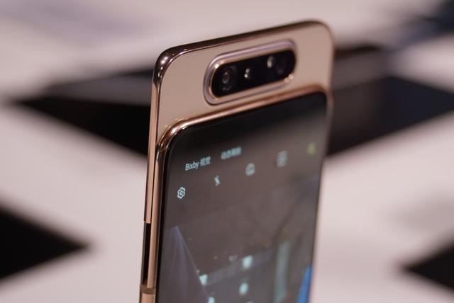 而与其他A系列机型所不同的是,这款三星Galaxy A80的主摄为一颗4800万的镜头,在需要前置摄像头的时候,这枚后置摄像头模块能够进行升起翻转的动作来变成前置摄像头。