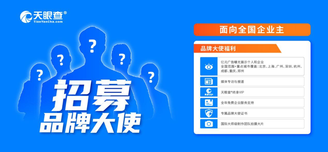 原标题:天眼查海选企业主出任品牌大使,共享亿元广告位