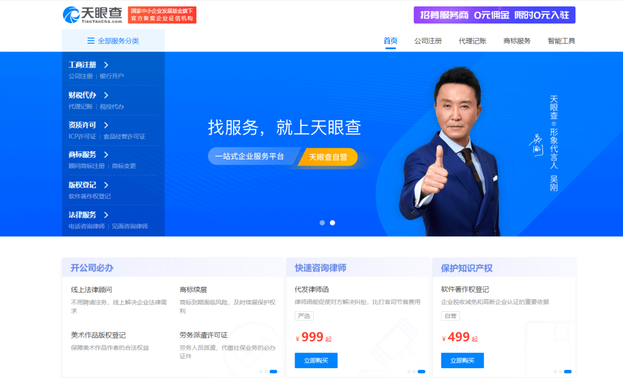 围绕着“开公司”,在企业服务领域,天眼服务支持企业在“不出门、不接触”的情况下完成工商代办、商标注册、财税代办、法律咨询等业务,实现“足不出户,照办业务”。以往,企业服务线下场景过度依赖地缘优势,代办机构专业性无法预先核验,服务机构的不专业,将后患无穷。例如,工商代办不专业导致企业被列为“经营异常”,财税代办不专业将导致税务记录留下污点,商标注册等知识产权服务不专业导致自创品牌被山寨而无法维权,法律合同审核不专业导致业务亏损无法补救……此类关乎企业长远发展的服务“安全”也是社会发展的重大命题。随着天眼查将传统线下业务向线上迁移,通过大平台实力对业务执行团队进行严选资质、监督质量等为客户提供保障,让企业从成立初期就能获得更高安全感,有效提高了整个经济社会的效率和安全性。