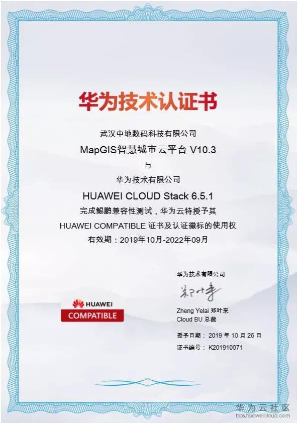 原标题:MapGIS智慧城市云平台V10.3通过华为云Stack(鲲鹏)兼容性认证