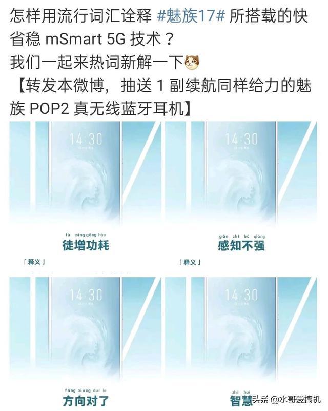 魅族这次换了全新的营销负责人,感觉在营销上也非常大胆了,毕竟这前两天发的这几张图就足够“缺德”,真是汇聚了2019年手机圈的几大热词啊,那么魅族17要集徒增功耗、感知不强、方向错了、增加智慧、我还给加两个打快板、卢三十瓦于一身,这台手机应该能卖的好吧?