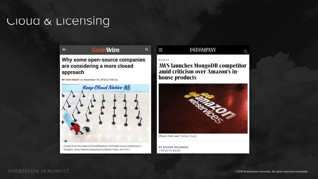 一旦开源业务达到一定的成熟度,公共云的威胁和许可争议就有可能浮出水面。许可授权是一个备受争议的话题,它固然很重要,但我看到太多公司在早期花费太多来讨论这一问题。
