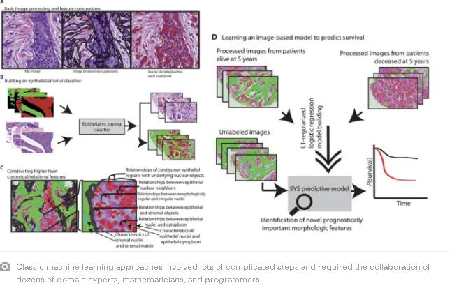 另一种不同的方法是机器学习 。与符号人工智能相反,机器学习算法被赋予了一个通用的结构,并通过对训练实例的检验来开发自己的行为能力。然而,大多数早期的机器学习算法仍然需要大量的人工工,来设计用来检测图像相关特征的部件。