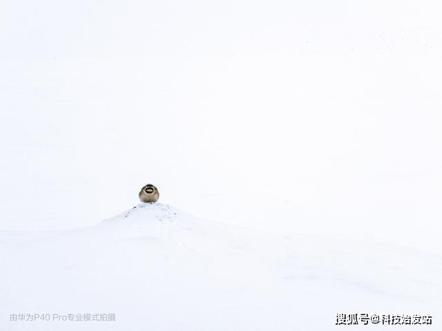 野生动物篇,纪录着三江源众多珍稀的野生动物。就像角百灵是在可可西里无人区中最常见到的鸟类,大雪过后它的身影更加容易辨认。雪中曝光与白平衡较难把握,但华为P40 Pro在长焦端一直有很高的稳定性,能够帮助摄影师轻松拍摄。