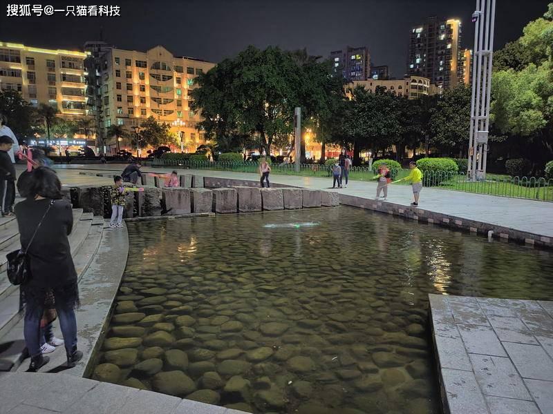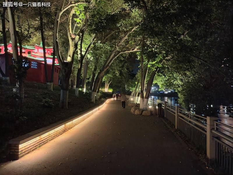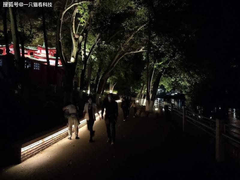 ▲公园外滩面向灯光的堤坝取景,专业相机模式下照片画面与人眼取景画面效果几乎一致