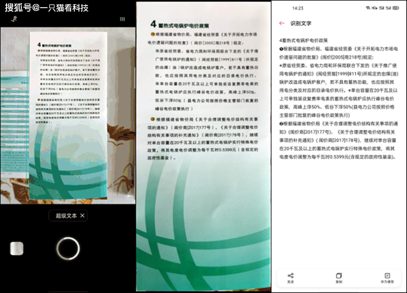 如今电子化给用户带来很大便利,OPPO Find X2系统内置提供了非常实用超级文本功能,它能够实现类似传统扫描仪的电子版画面收录功能。通过相机的超级文本模式,在拍摄过程中镜头即会对文本所示区域进行边界划定,当用户执行拍照操作后,软件会对画面进行切割仅展示内容部分,对于一些材料电子化转档提供了极大的帮助。除了图片的转入之外,系统内置的文本识别功能还可以将所拍摄的图片进行文字化,极大的方便文书岗位人员的稿件转录书记工作。