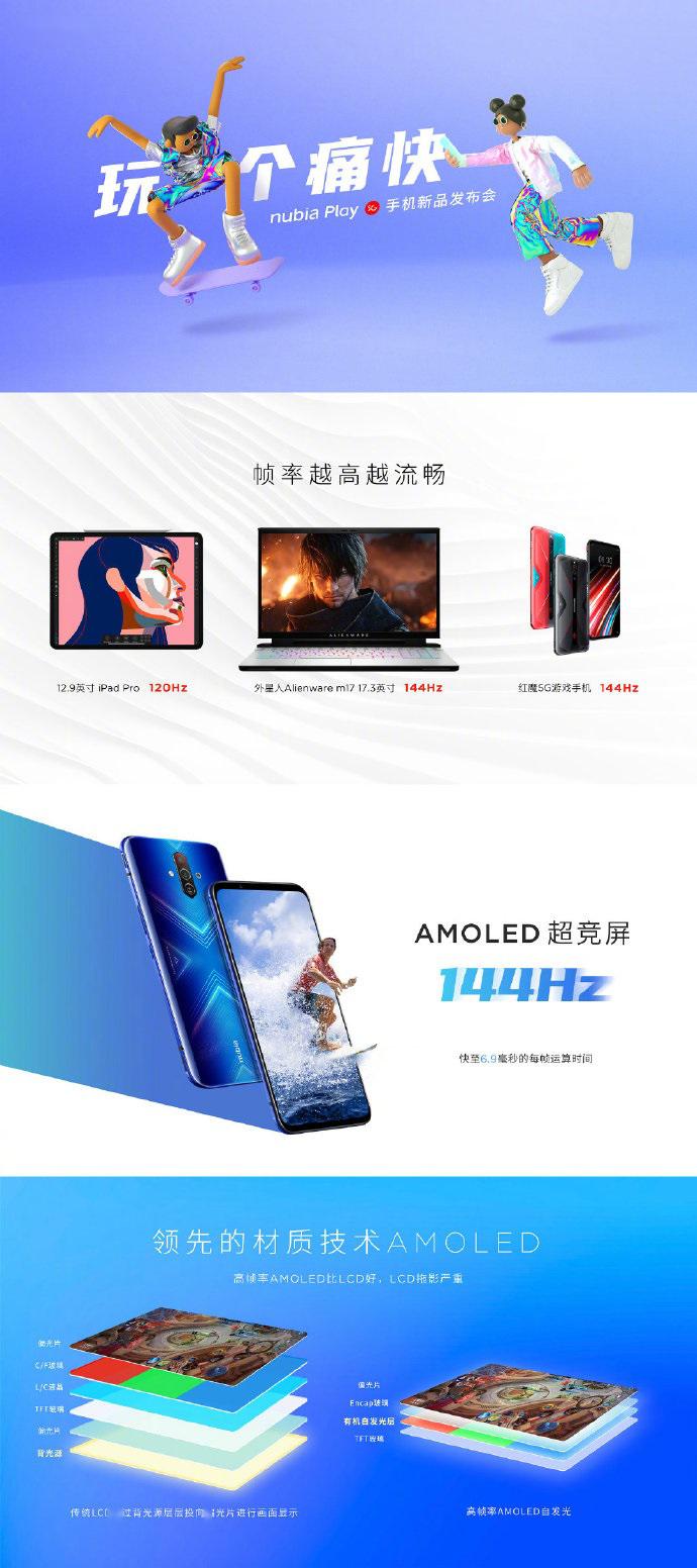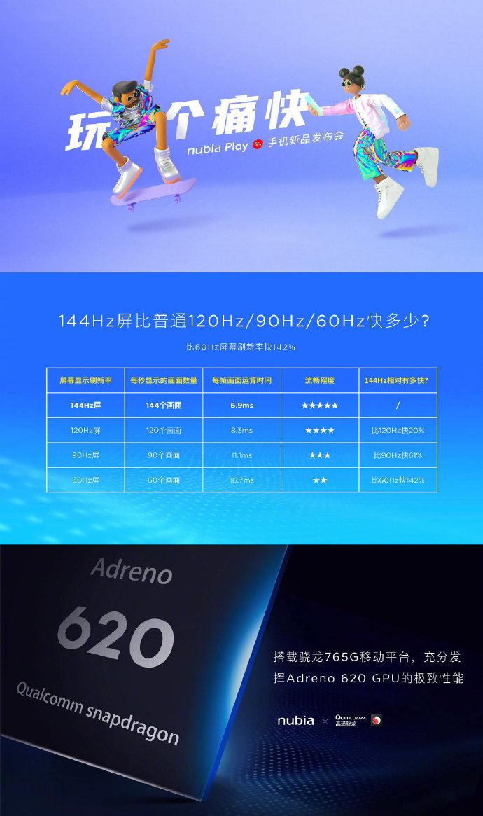 原标题:努比亚 Play 配置公布:搭载骁龙 765G,144Hz 电竞屏