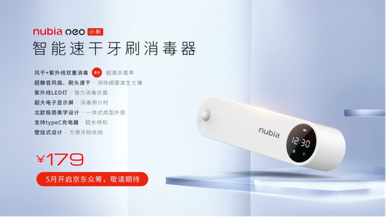 为了让更多人享受到科技所带来的健康生活,此次nubia neo小新系列的产品价格也同样极具吸引力。比如智能声波电动牙刷的售价仅为199元,智能速干牙刷消毒器仅需179元(5月开启京东众筹),而两者的套装版本更是只需369元即可入手。