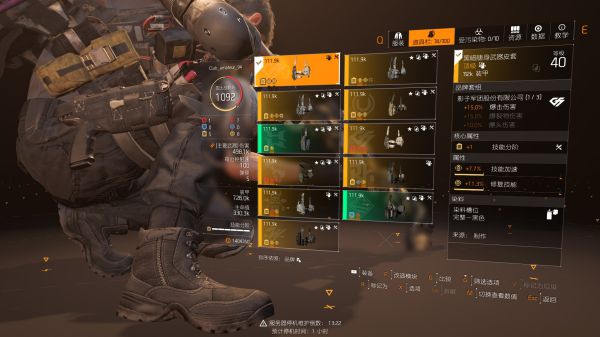 装备配置技工职业+响尾蛇+1霸主+2村上+1影子+1RK+1阿尔卑斯,1RK也可以换成临时做出来的枪套,多一个技能修复插槽,这里RK主要是给自己奶;技能和天赋可以自己随意搭配,想要输出高点可以用火天赋,想要奶多点可以用奶妈天赋,副武器可以选一把冲锋枪全堆暴击备用。