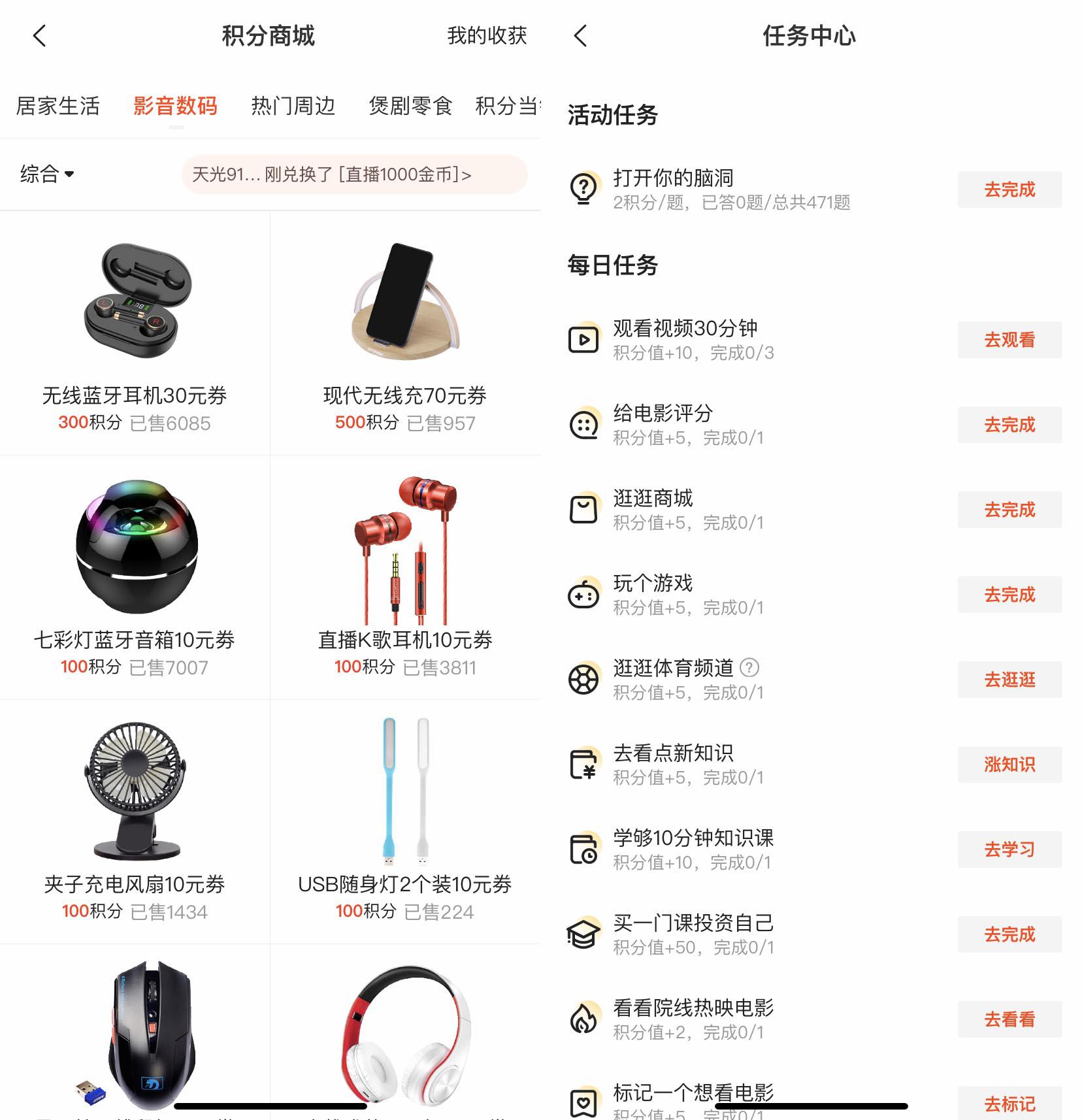 对比优爱腾等老牌视频平台的积分商城,涵盖居家生活、影音数码、游戏礼包等方面的产品兑换,B站的积分体系目前尚不成熟。相应的,在积分获取体系上,老牌视频平台在每日任务的设计上埋下了更多点,更容易刺激用户观看视频。