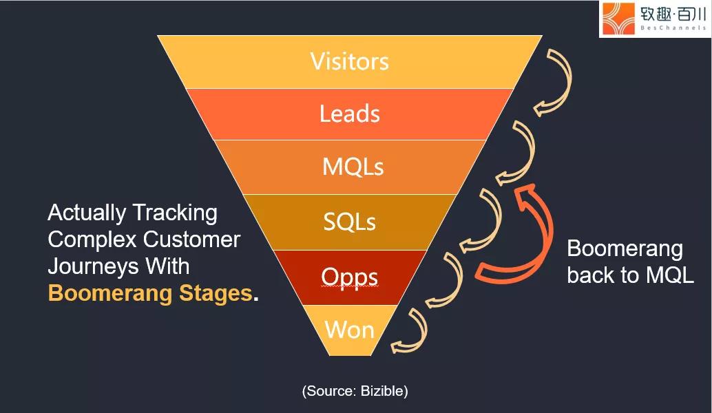 B2B用户购买旅程是混乱的,流动的,双向的, 一个不限于单向流动的漏斗,意味着漏斗数据比以往任何时候都更准确。