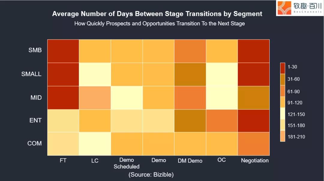 鉴于B2B企业的成单周期较长,深入的过程管理尤为重要,测量用户购买旅程的速度,当重要线索放缓时,可以作为早期预警机制。
