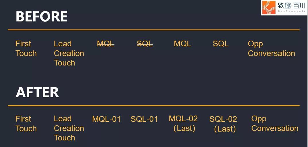 首先,能够跟踪到同一阶段的多个过渡阶段 (例如,MQL-01、MQL-02、MQL-03),不再只跟踪最后一个阶段的过渡事件。