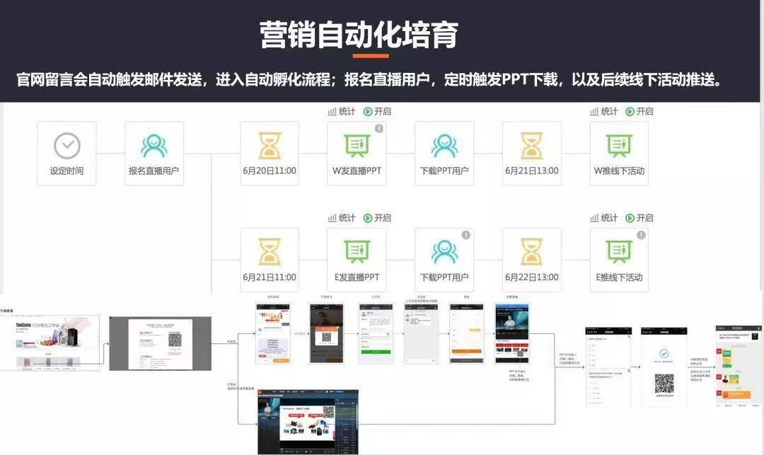联想通过致趣百川营销自动化的平台去培育商机线索,所有客户在官网上的留言,都会自动邮件发送,进入自动化孵化的流程。以ThinkPad L推广为例,客户点击了L380,做了留资,那未来联想在L380产品上有促销活动或产品提升的时候,他们都会跟客户做交流。