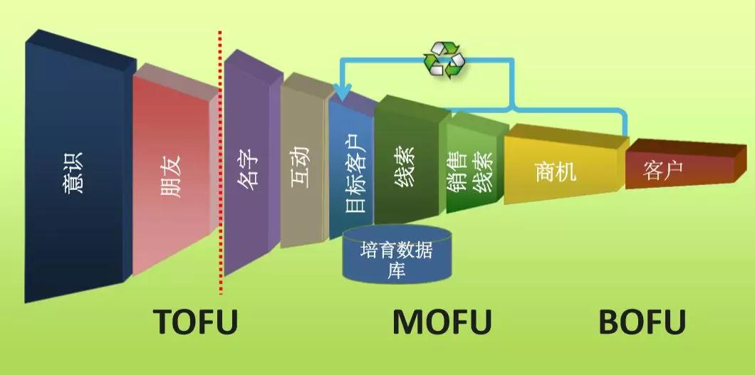 9个小阶段:意识、朋友、名字、互动、目标客户、线索、销售线索、商机、客户