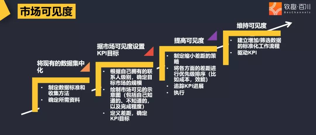 提高市场可见度,就需要企业通过不断挖掘目标市场中的用户信息,完善用户信息数据库,以便之后的营销策略可以更好的吸引潜在用户,带来更多的业绩增长可能。具体分为四个步骤: