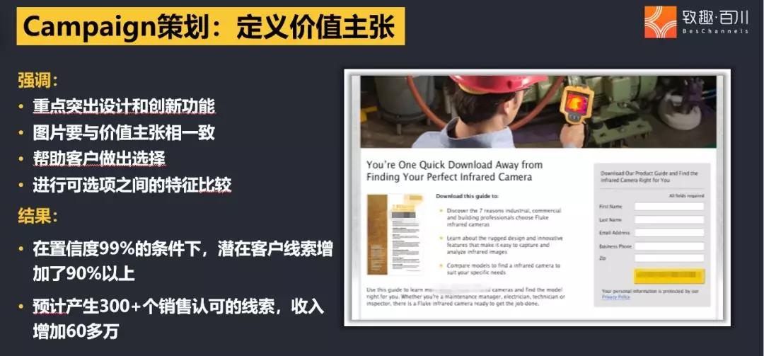 这种高效传达信息的营销策略带来非常可观的效果:潜在客户线索增加了95%以上,产生了300多个销售认可的线索,收入增加了60多万。
