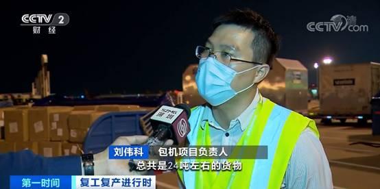 包机项目负责人 刘伟科:总共是24吨左右的货物,订单数量接近30万个,医用物资占2成左右。
