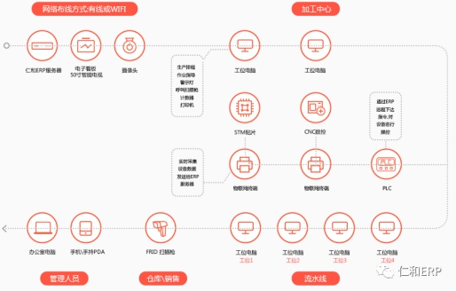 企业通常我们会将生产设备和管理信息系统各自连接起来,设备和信息系统之间链接。但是我们会发现,生产的原材料和生产设备还没有连接起来。这时将仁和ERP对接RFID/扫码枪,物料物品信息直接扫码获取;通过无线通讯设备信息对接情况下,生产车间可进行多品种、小批量、定制生产,最终实现企业智能生产。