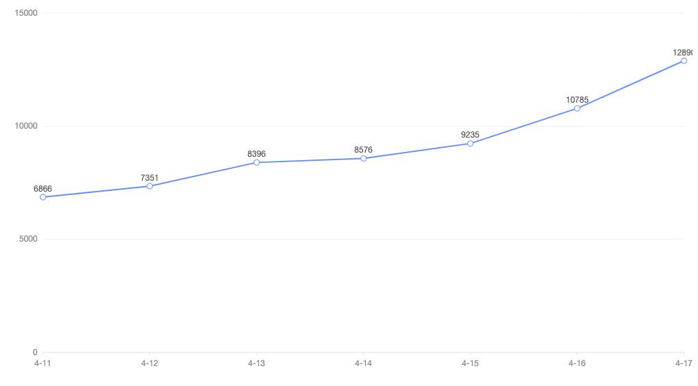 下图是某淘宝店04-11到04-17的销售额数据,我们发现数据在11日到17日这7天呈现一个上升趋势,店铺主就需要考虑库存是否充足,是否需要增加储备等。