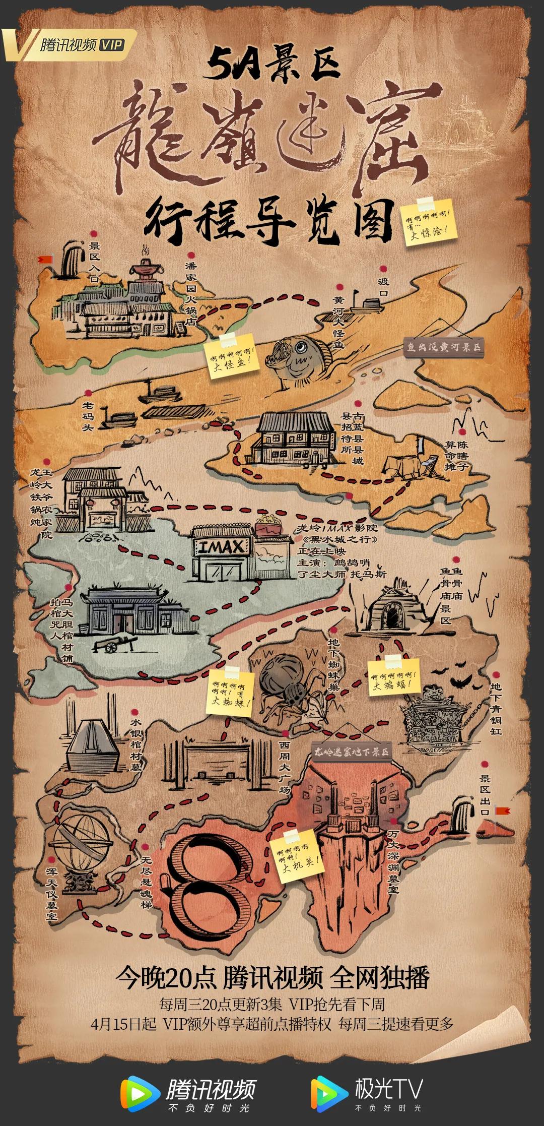 同样的创意营销也出现在了网剧《龙岭迷窟》的宣传上。因为受到疫情影响,线下旅游成为奢望,所以在项目操作时,项目团队策划了「5A景区《龙岭迷窟》」的云旅游创意海报。