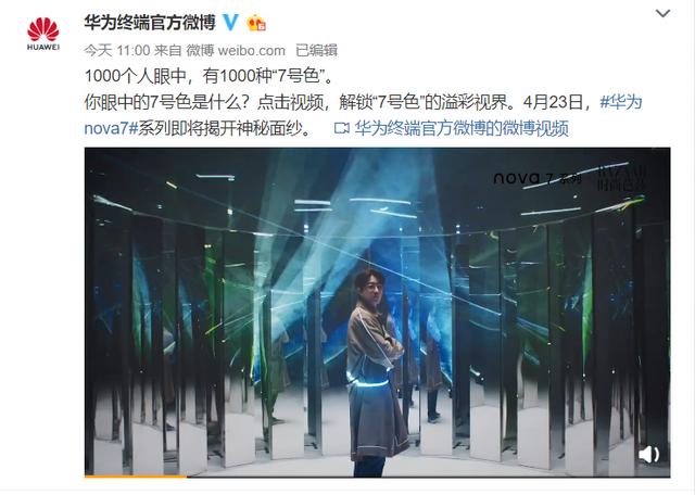 华为nova7系列手机的首次亮相出自7电台主播营业Day1 宣传视频,当易烊千玺 遇见全新"7号色",手持华为nove 7系列接听来电时,视频中短暂出现了华为nova 7系列侧身剪影,四字弟弟修长的手指轻松手持视频中的华为nova 7手机,"轻"跟"薄"一览无余。