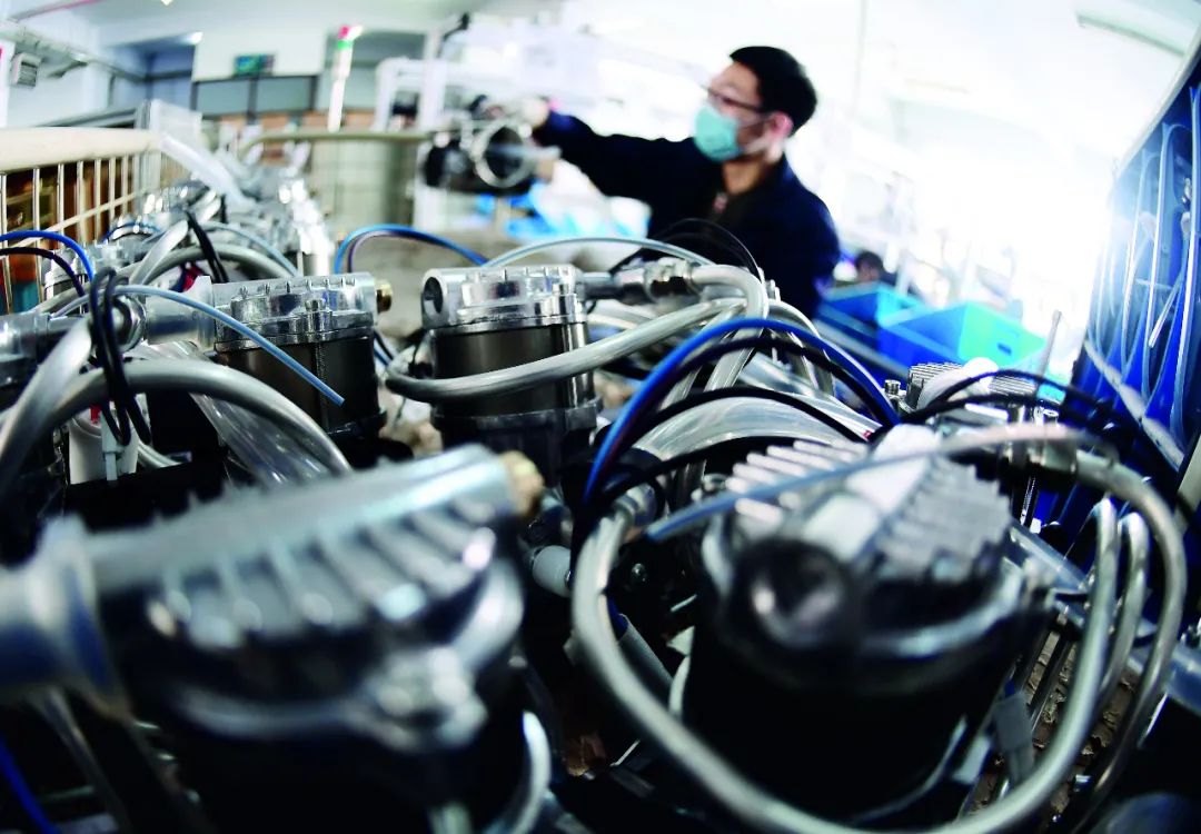2月7日,辽宁沈阳一医疗科技公司,员工在加班赶工生产医用制氧机和呼吸机保供应。图/人民视觉