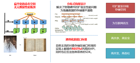 1)实际上,讨论对象存储大多数是指存储接口,是否支持RestFul或S3,也即对象接口的形式来访问存储空间。