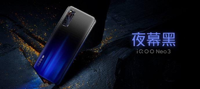 iQOO Neo3支持夜幕黑,青空蓝配色。