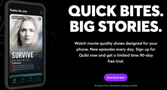 为了吸引新用户注册,在4月底前注册Quibi,还能享受90天的内容免费观看服务。